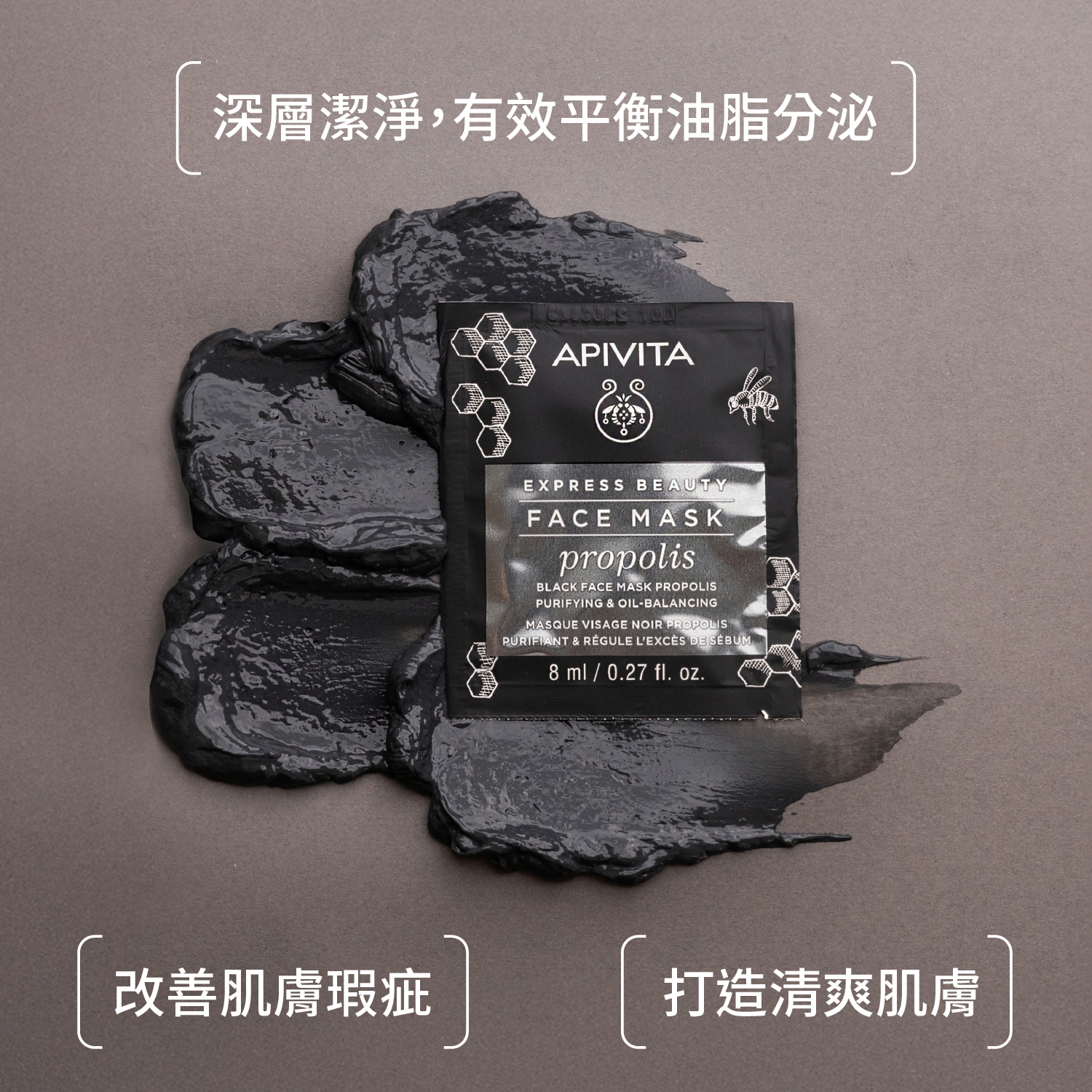 蜂膠淨肌控油面膜 源自地中海地區的傳統療法,蜂膠以其抗菌作用而聞名,能深層清潔,平衡容易生成粉刺的油性皮膚。